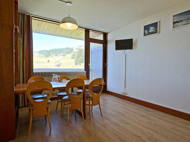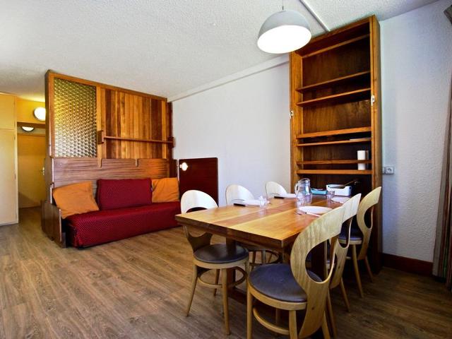 Résidence de 4 étages avec ascenseur, accolée au centre commercial, entrée sécurisée avec badge, 84 studios avec balcons exposés coté pistes (NORD) ou vue panoramique vallée (SUD). placards à skis situés dans l'entrée de l'immeuble.