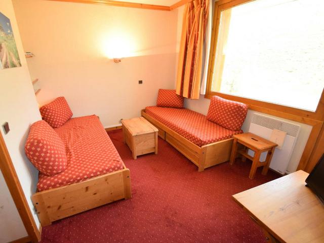 Studio divisible 4/5 pers, 26m2, de plain-pied (déneigement non garanti) sur accès piste, 1er étage par escaliers, exposition SUD, vue sur pistes. Cuisine ouverte : 4 plaques électriques, four micro-ondes grill, réfrigérateur, lave-vaisselle. Séjour : 2 lits banquette 1 pers et 1 lit tiroir, TV - Partie divisible : coin repas, 2 lits gigognes - SDB : douche - WC séparés - Les sols : moquette, sauf cuisine/wc/sdb : plastique. Literie: couvertures . Casier à skis n°B13 au RDC. WIFI INLCUS - Ménage final, draps, serviettes et forfaits ski en option. Studio agréable avec accès direct sur pistes. La résidence : petite résidence de 3 étages, calme, AU PIED DES PISTES, à env. 700m des commerces : accès par navettes gratuites en bus - parking extérieur non payant à proximité, non privé - Plagne Villages est reliée à Plagne Centre par le télébus (télécabine gratuite).