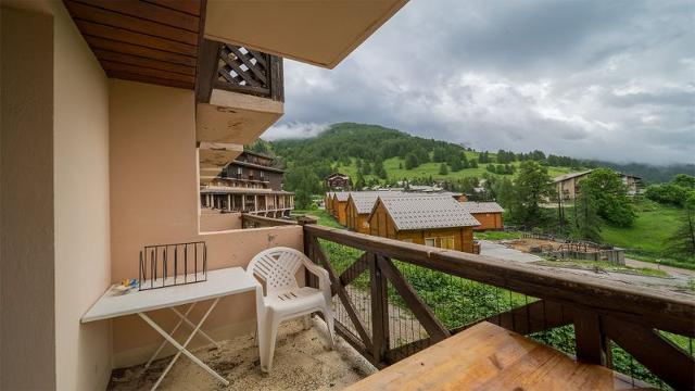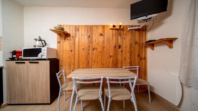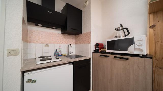 - Séjour avec TV et canapé-lit double (1x2 pers) ; - Cuisine équipée : réfrigérateur, micro-ondes, cafetière à dosettes (Nespresso), vaisselle/couverts et ustensiles de cuisine ; - Coin montagne : lits superposés (2x1 pers) ; - Salle de bain avec douche, porte serviette, et WC ; - Grand balcon vue montagne avec mobilier de jardin ; - Le logement est équipé de couvertures et d’oreillers ; - Exposition sud ; - Parking extérieur privé (résidence).