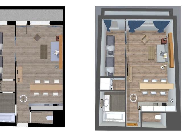 A proximité du centre commercial (commerces, restaurants, location de skis, cours de skis…), accès par galerie couverte.