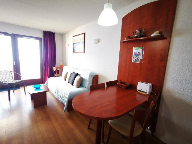Appartement 2 pièces 4 couchages situé au niveau - 2 sans ascenseur d'une résidence en flanc de montagne, avec vue panoramique sur la station. Surface de 33 m² avec terrasse, exposition sud. Séjour équipé d'un canapé lit en 160 (2x80), coin repas, TV. Chambre avec un lit en 160. Coin cuisine dans séjour avec plaques vitro céramiques, micro-ondes multifonctions, bouilloire, lave vaisselle, grille pain. Sol en parquet. Casier à ski en RDC. Emplacement de parking couvert n°80 ( hauteur 1.95m).