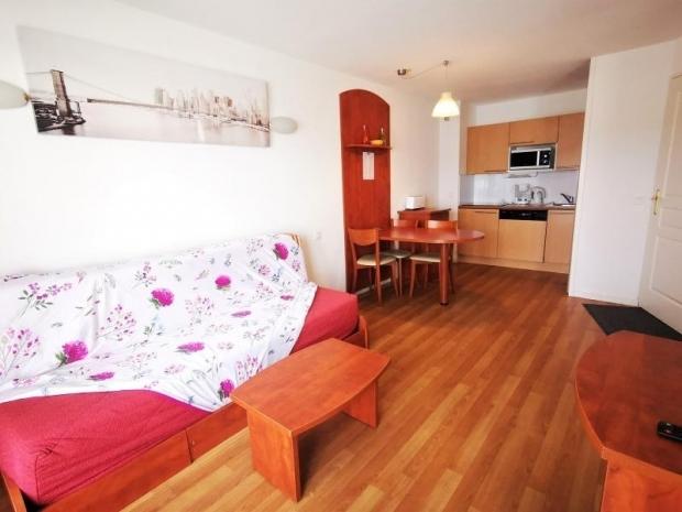 Appartement 2 pièces 4 couchages situé au rdc sans ascenseur, surface de 33 m² avec terrasse, exposition sud. Séjour équipé d'un canapé lit en 160 (2x80), coin repas, téléviseur. Chambre avec un lit en 160. Coin cuisine dans séjour avec plaques vitro céramiques, micro-ondes multifonctions, bouilloire, lave vaisselle, grille pain, friteuse électrique. Sol en parquet. Casier à ski. Parking couvert n° 114. ( hauteur 1.95m).