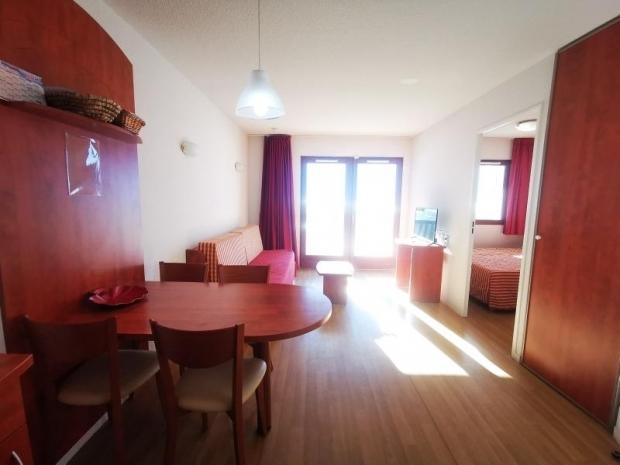 Appartement 2 pièces 4 couchages situé au rdc sans ascenseur, surface de 33 m² avec terrasse, exposition sud offrant une magnifique vue sur les pistes. Séjour équipé d'un canapé lit en 140, coin repas, téléviseur. Chambre avec un lit en 160. Coin cuisine dans séjour avec plaques vitro céramiques, micro-ondes multifonctions, cafetière filtre, bouilloire, lave vaisselle, grille pain et appareil à raclette. Salle de bain et toilettes séparées. Appartement non fumeur. Sol en lino. Casier à ski. Parking couvert n°104.( hauteur 1.95m).