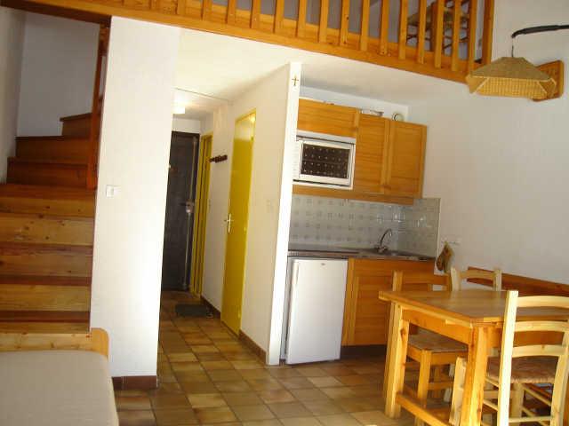 Studio mezzanine + coin montagne de 38 m² pour 6PERS. AVEC BALCON SUD : COMPRENANT UN SEJOUR AVEC UN CANAPE LIT 2 PERSONNES/TV/COIN CUISINE EQUIPE avec 4 plaques vitrocéramiques-four - micro-ondes - cafetière électrique - bouilloire/COIN MONTAGNE 2 LITS SUPERPOSES/ SALLE DE BAIN /WC SEPARE/