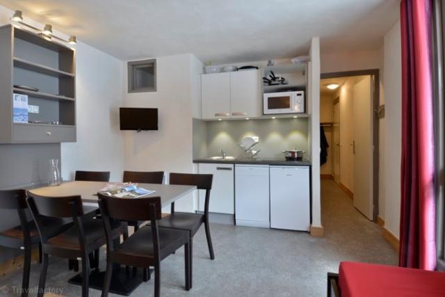 L'appartement avec balcon est moderne et agréable. Profitez de l'accès libre à la piscine extérieure chauffée de la station !