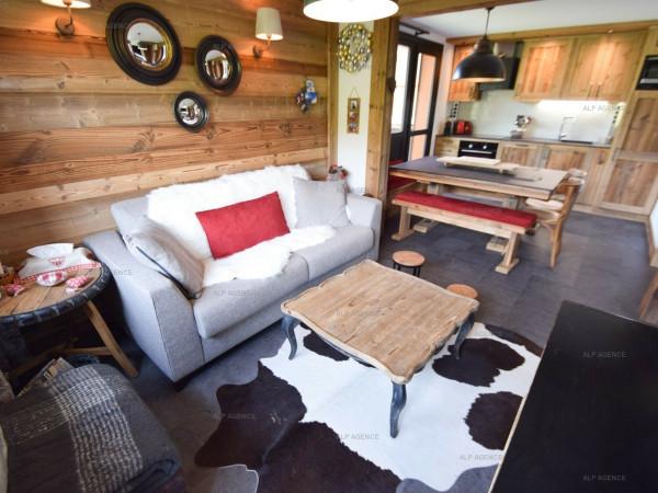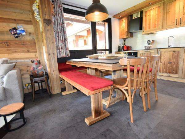 Bel appartement de 5 pièces, 60m2 env + sous pente 20m2 utiles env, en triplex, pour 8/10 pers. 2ème étage sans ascenseur, balcon avec belle vue sur les pistes - Étage intermédiaire : séjour avec coin repas, coin salon, 1 canapé-lit convertible 160cm. Cuisine ouverte : four, four micro-ondes, lave-vaisselle, réfrigérateur, 4 plaques induction, Nespresso (dosettes non fournies) hotte. 1 WC séparés, Lave-linge/séchant - ETAGE HAUT : Mezzanine ouverte : 1 lit double 140cm - CH 1 : sous pente : 1 lit double 140cm, TV - Rangements - Salle de douche : douche + WC inclus - ETAGE BAS : CH 2 : 1 lit double 160cm - TV, placard - CH 3 : 1 lit double 140cm - TV - SDB : baignoire - WC séparés -Sols : lames pvc - Ménage de fin de séjour, draps, serviettes et forfaits ski en option. ANIMAUX NON ADMIS - Équipement musique - WIFI inclus - Volets roulants - 3 casiers à skis - Très Bel appartement chaleureux, rénové style contemporain Montagne, très belle vue sur Pistes.