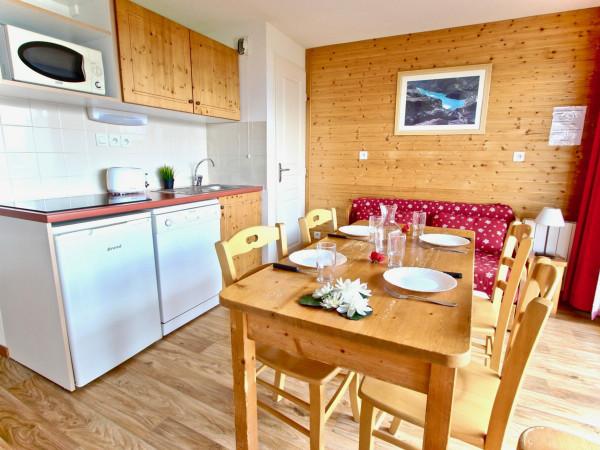 Equipée d'un réfrigérateur, de quatre plaques vitrocéramique, d'un micro-ondes, et d'un lave vaisselle.