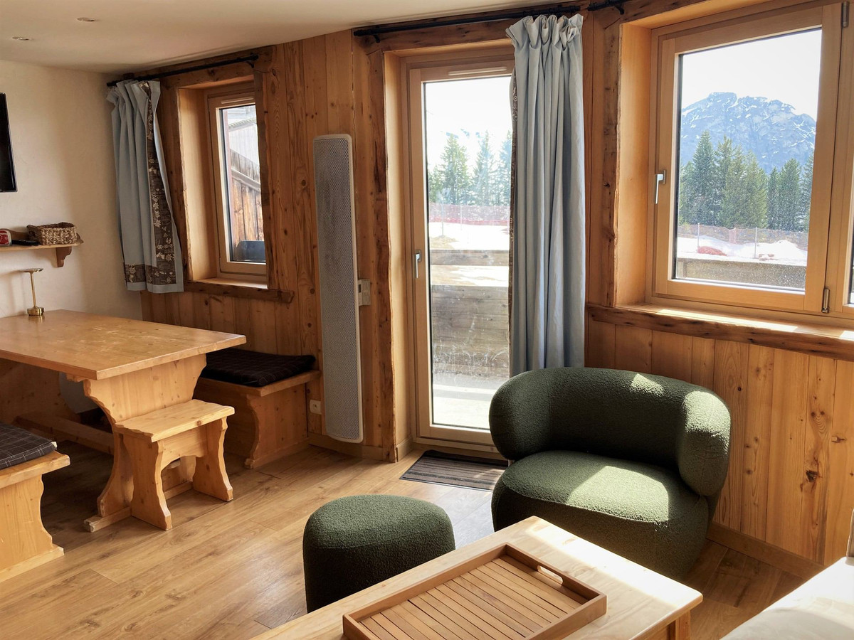 Agréable appartement en duplex, situé dans le quartier historique des Dromonts. Exposé Sud avec vue sur le domaine skiable.
