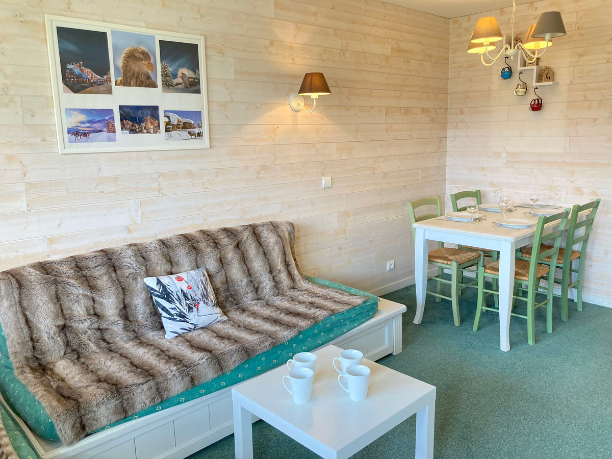 Ce 2 pièces pour 4 personnes est situé au 2ème étage de la résidence Saskia 3, dans le quartier de la Falaise, à proximité de l'accueil station, des commerces et restaurants. L'accès aux pistes facile par le boulevard des skieurs.