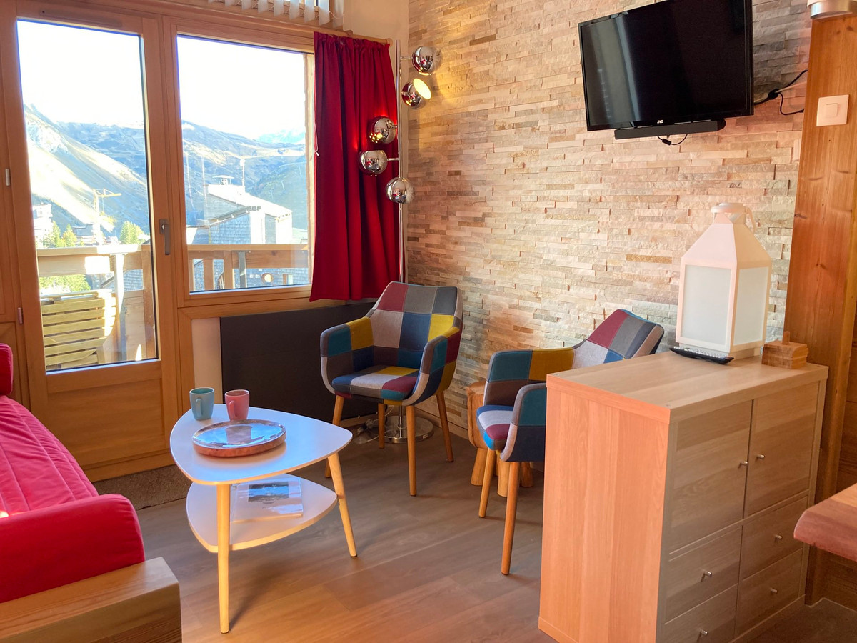 Chaleureux Studio Cabine situé au 6ème étage de la résidence Alpages 2. Avec balcon exposé Nord (vue Falaise).
