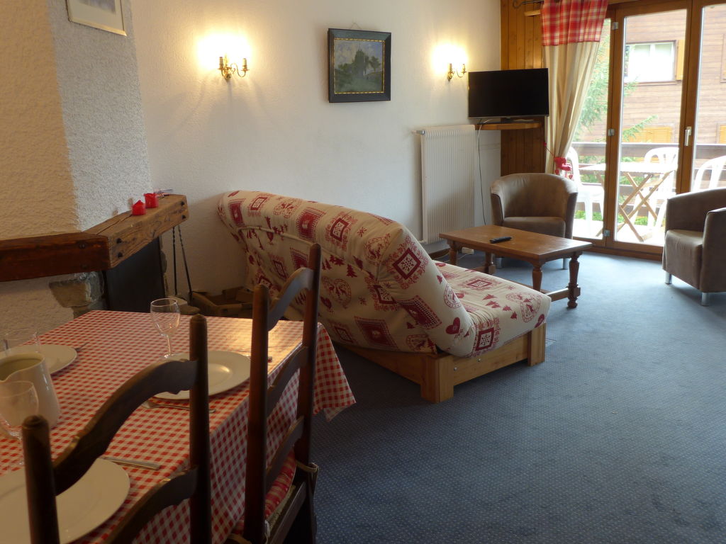 "Ourson", apt 3 pièces 50 m2, au rez-de-chaussée. Aménagement fonctionnel et agréable: grand séjour/salle à manger avec cheminée et TV (câblée). Sortie sur le jardin. 1 chambre avec 1 grand-lit (1 x 160 cm, longueur 200 cm). 1 petite chambre avec 1 x 2 lits superposés (90 cm, longueur 200 cm). Coin cuisine (4 plaques de cuisson, four, lave-vaisselle). Douche/WC. Meubles de terrasse. Très belle vue sur les montagnes et la vallée. A disposition: Internet (Connexion WIFI, gratuit). Place de parking à 20 m. Veuillez noter: maison non-fumeur. 1 animal/ chien autorisé.