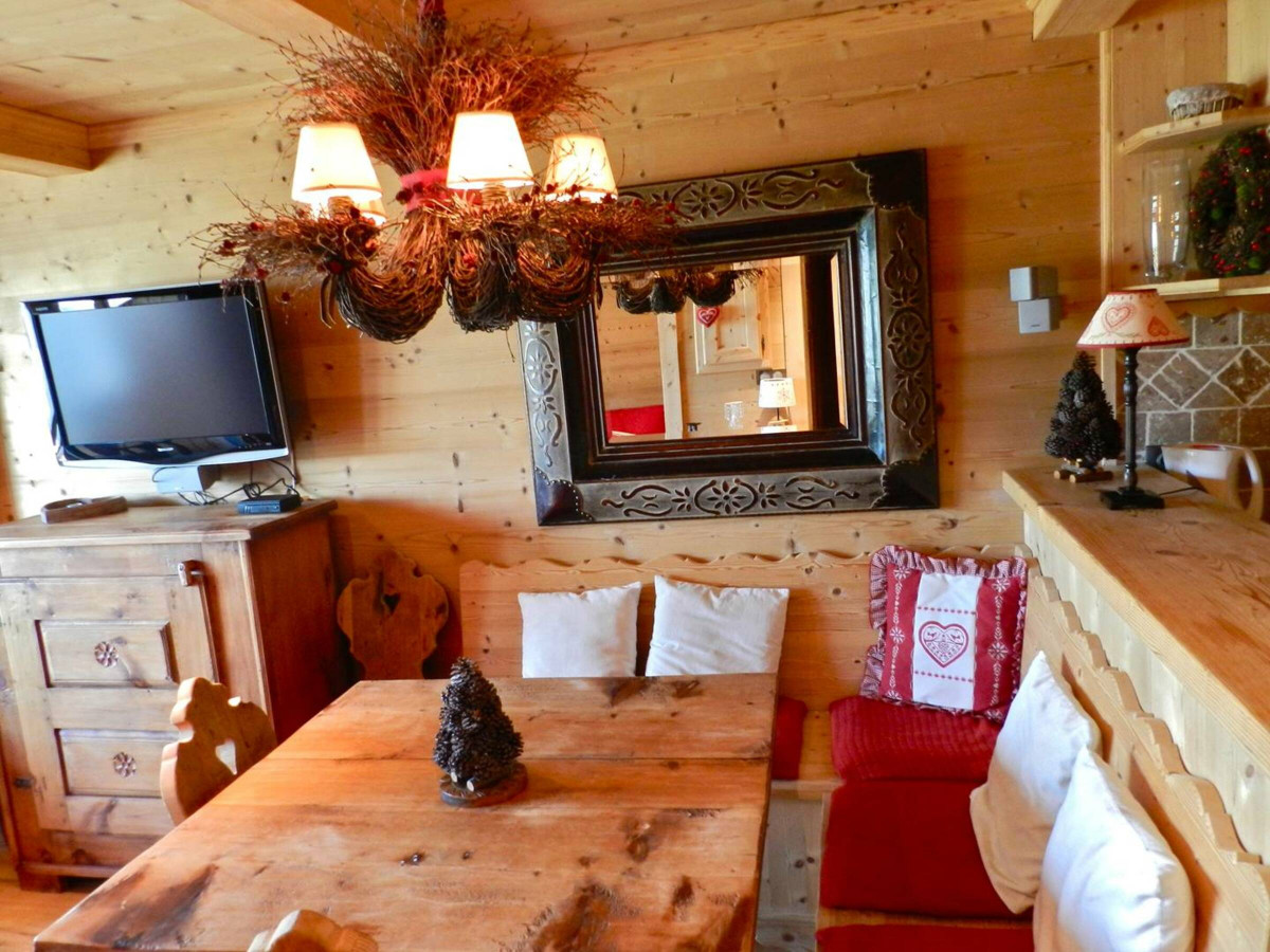 Décoration montagnarde très soignée pour cet appartement entièrement rénové au centre de Courchevel 1850.