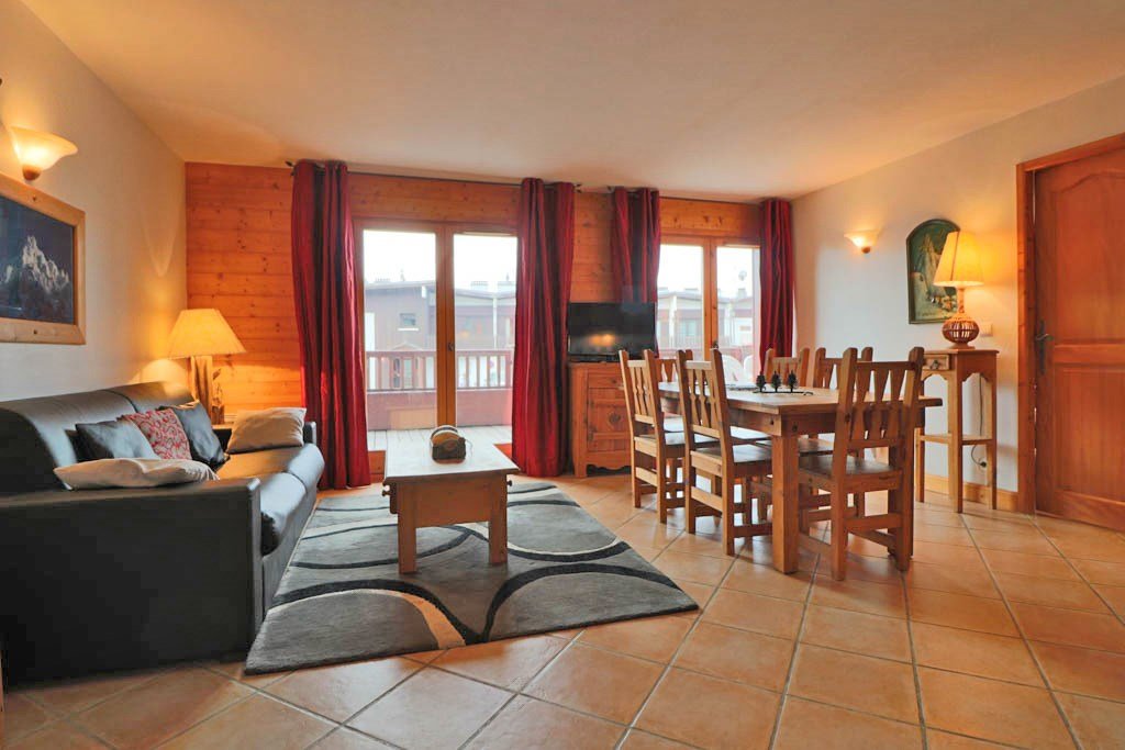 Séjour avec canapé convertible 2 personnes, TV led. Balcon exposé Sud avec très belle vue sur la vallée.