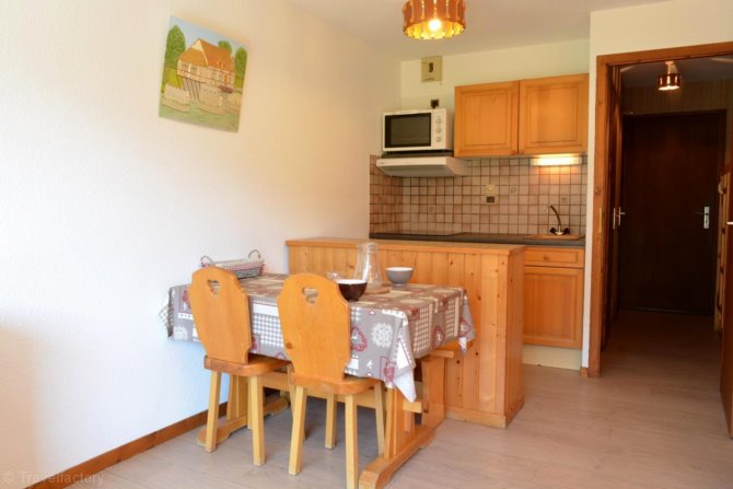 L'établissement propose des appartements entièrement équipés et offre une belle vue sur la Chaine des Aravis et le village.