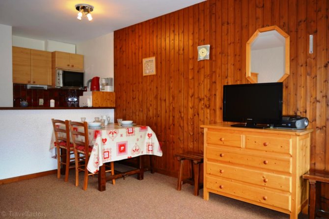 Vous avez accès à un grand balcon qui est orientée plein sud et face aux pistes de ski, et qui est pourvu d'une table et de chaises de jardin. L'appartement est équipé d'une télévision.