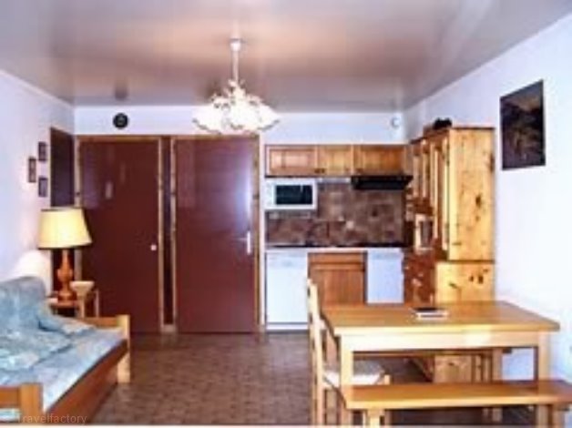 Cet appartement de vacances, situé au 2ème étage, se compose d'un beau séjour avec télévision et cheminée donnant sur un grand balcon sud, une cuisine ouverte équipée d'un lave-vaisselle, une chambre avec un lit double, une cabine avec 2 lits superposés + 1 lit tiroir, une salle de bain avec WC intégré. A l'étage, une mezzanine avec un lit double, une salle d'eau et un WC séparé. Dispose d'un garage fermé. Résidence sécurisée d'un digicode.