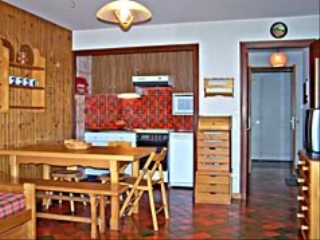 Cet appartement de vacances situé au 1er étage comprend un séjour avec 2 lits 1 personnes gigognes donnant accès à un balcon sud avec vue sur les pistes, un coin cuisine équipé, une alcove avec 2 lits superposés , une salle de bains avec WC.