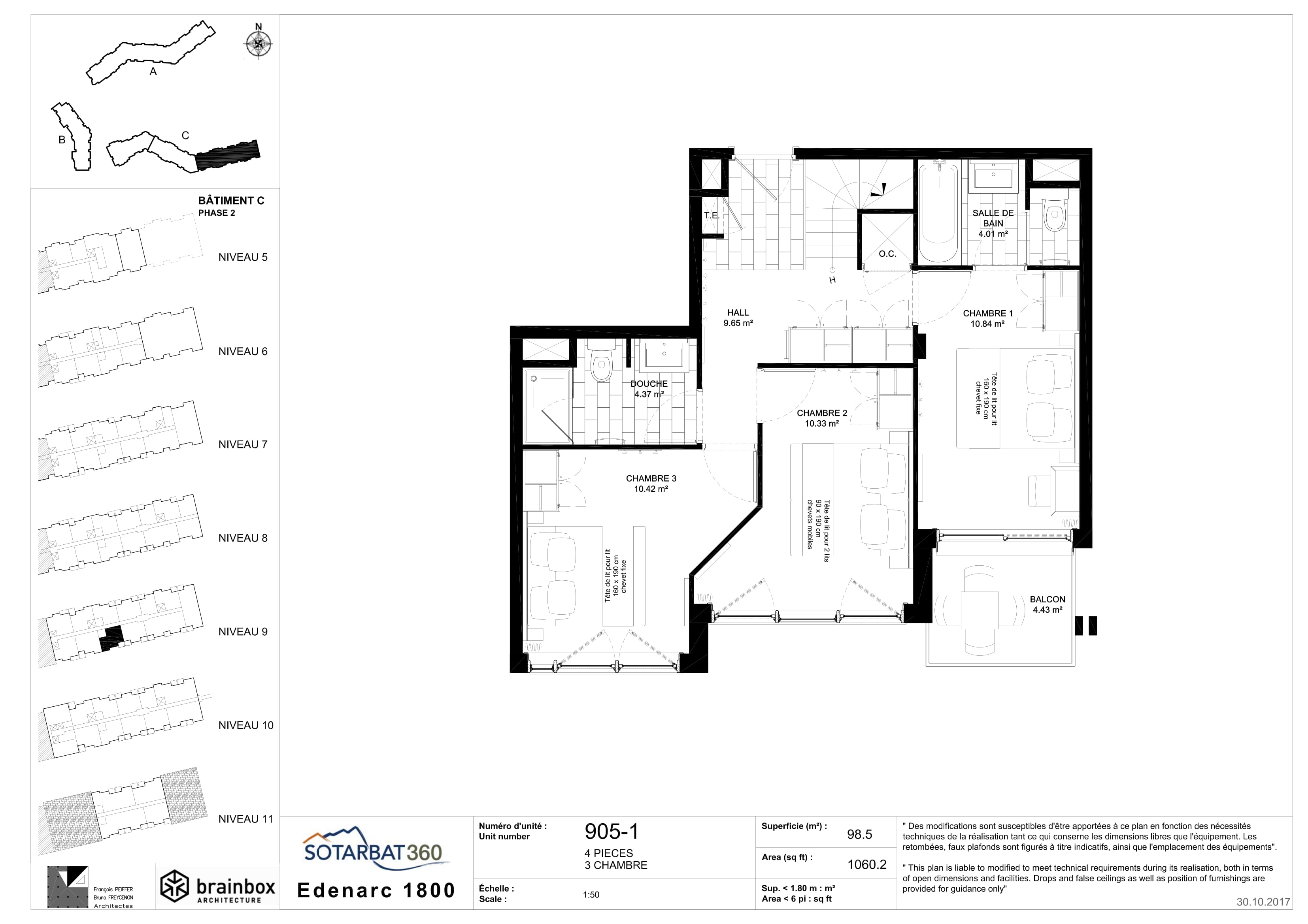 - Sortie résidence ski au pied au 8 ème ou 11ème étage.