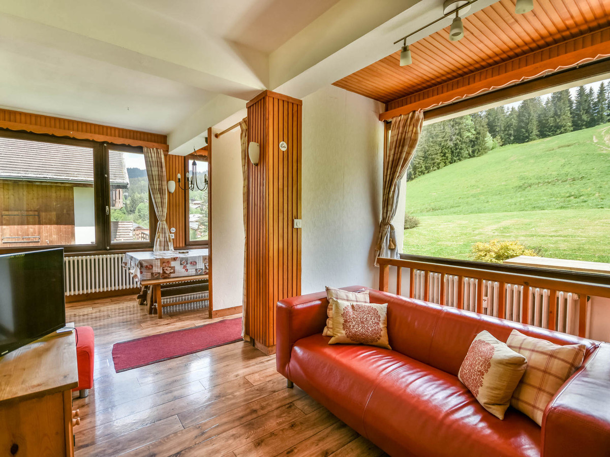 - 1 salon-séjour avec un canapé convertible rapido 160 x 190 cm (2 pers) et un fauteuil. Accès sur le balcon par porte-fenêtre, vue dégagée, exposition Nord Ouest
