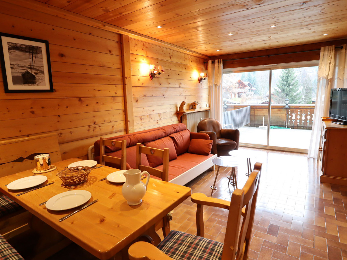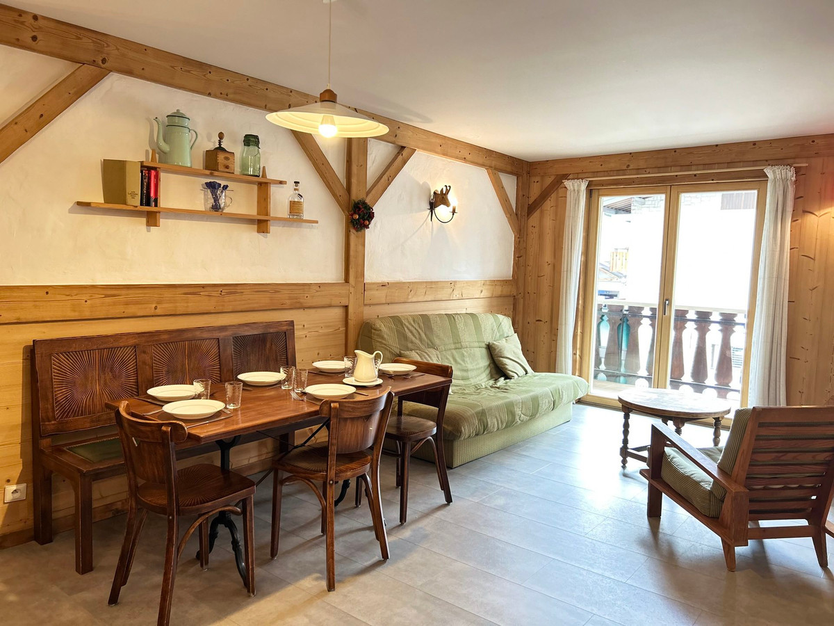 Cet appartement exposé Nord-Ouest avec balcon est situé en face de la place du marché et au dessus de petits commerces vous permettra d'être à proximité du coeur de la station des Gets.