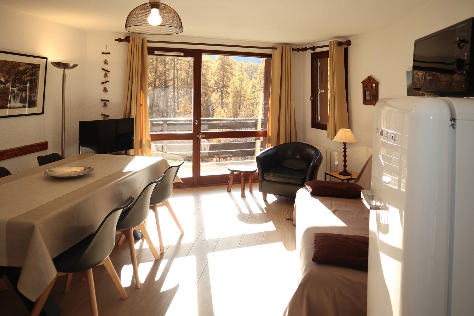 Bel appartement de 2 pièces équipé pour 8 personnes en résidence de standing aux ORRES 1800 m avec accès à une piscine extérieure chauffée et sauna comprenant une entrée , une chambrette avec 2 lits 1 place, un séjour avec 1 banquette convertible 2 places, une chambre avec 1 lit 2 places, un coin montagne avec 2 lits superposés 1 place, une salle de bains, une salle d'eau et wc séparés. Balcon exposition Ouest au 1er étage.