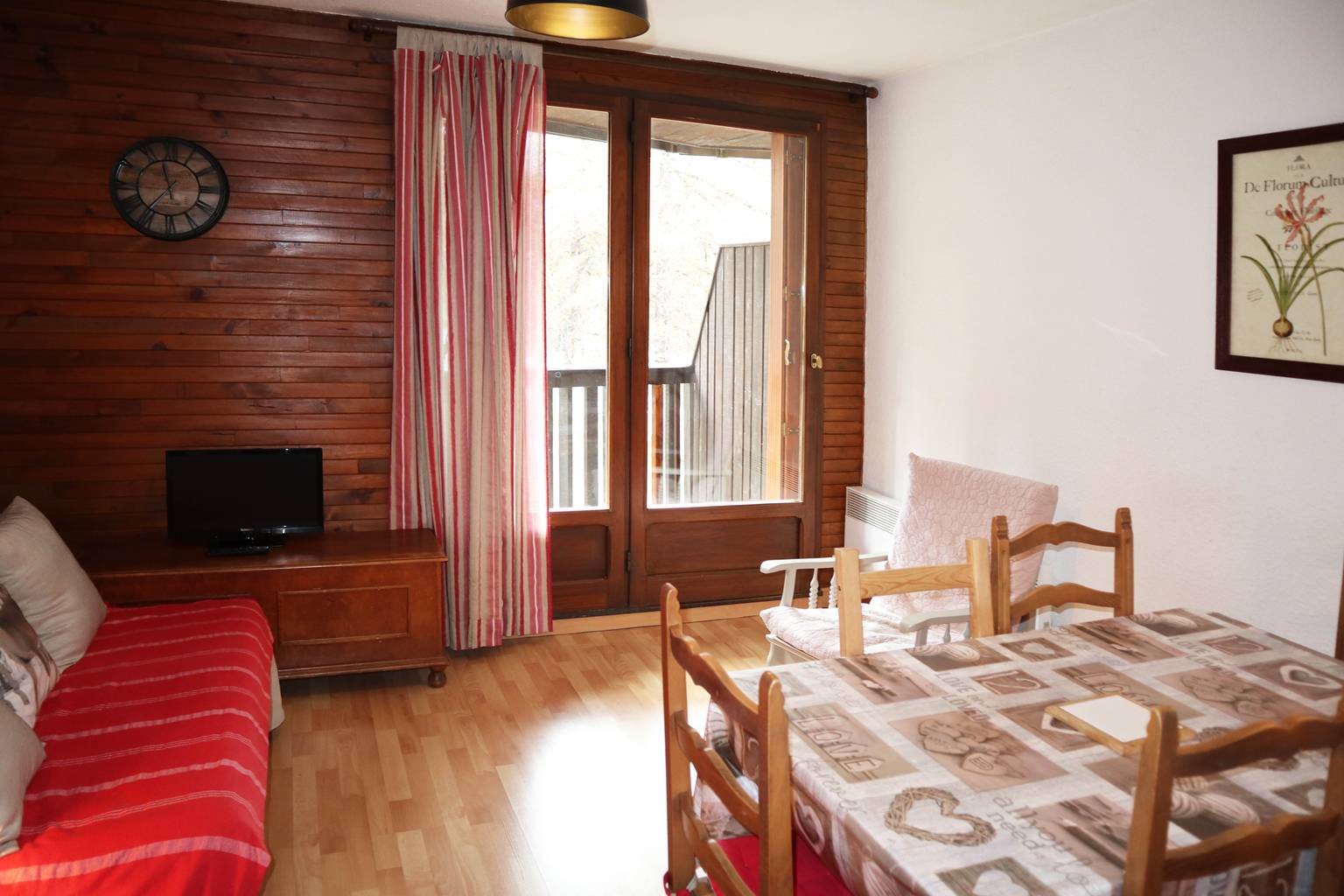 Très joli petit appartement équipé pour 4 personnes, situé au 1er étage d'une résidence 3 étoiles avec accès piscine intérieure chauffée et jacuzzi, départ skis aux pieds. Il comprend une entrée, un séjour avec 1 banquette convertible 2 places, une chambre avec 1 lit 2 places, un coin cuisine ouvert sur le séjour, une salle de bains avec WC, une grande terrasse exposition Ouest. Box à ski.