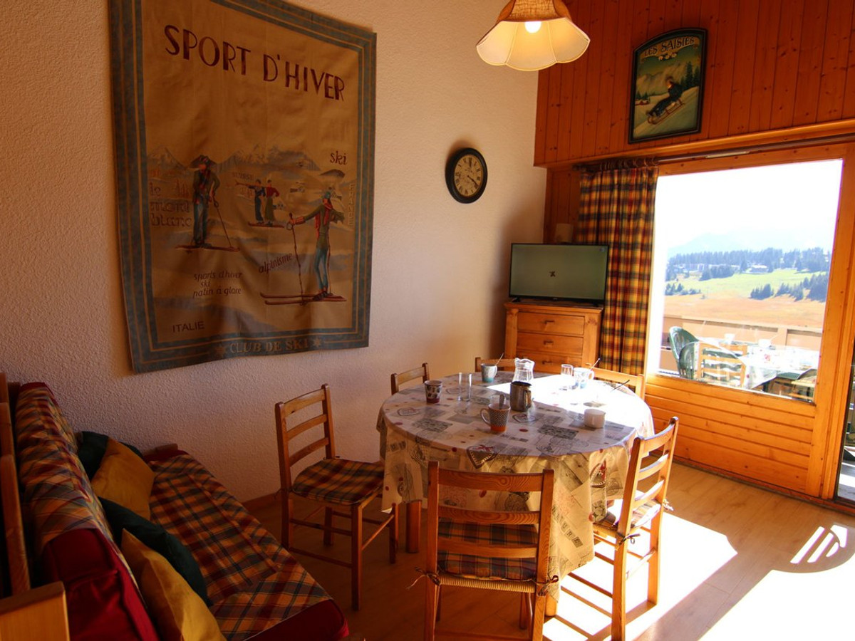 Studio + alcove de 23 m² situé au RDC surélevé de la résidence, orienté sud avec balcon et vue sur le Mont Bisanne.
