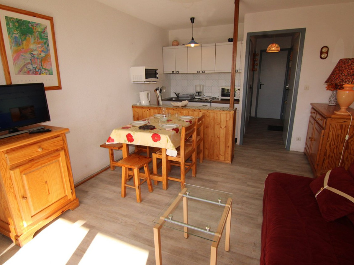 L'appartement se compose d'un séjour avec une banquette gigogne 2x90, une kitchenette équipée ouverte, d'une alcôve (coin couchage étroit) avec lits superposés 2x90 (NB: le lit supérieur d'un lit superposé est interdit aux - 6 ans), d'une salle de bains et WC séparé.