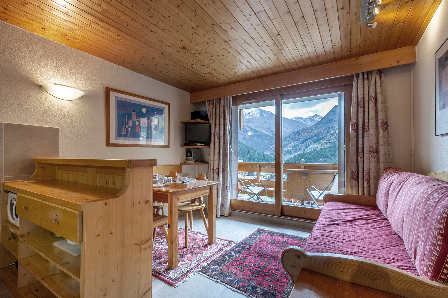 L'appartement Ruitor 305 d'une superficie de 24 m2 est exposé Sud avec une belle vue sur le Mont Vallon.