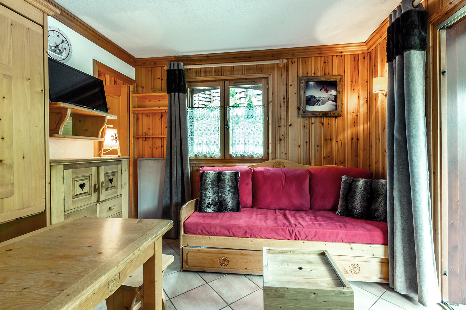 L'appartement Creux de l'Ours A031 d'une surface de 27m² est exposé Nord avec une vue sur les montagnes.