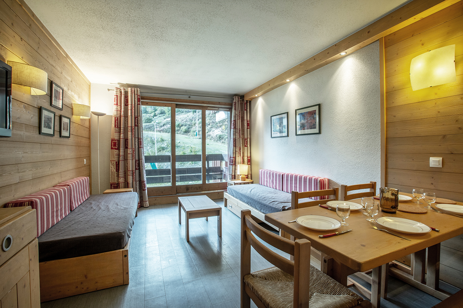 L'appartement Ruitor 104 d'une superficie de 34m² est exposé Sud avec une belle vue sur le Mont Vallon.