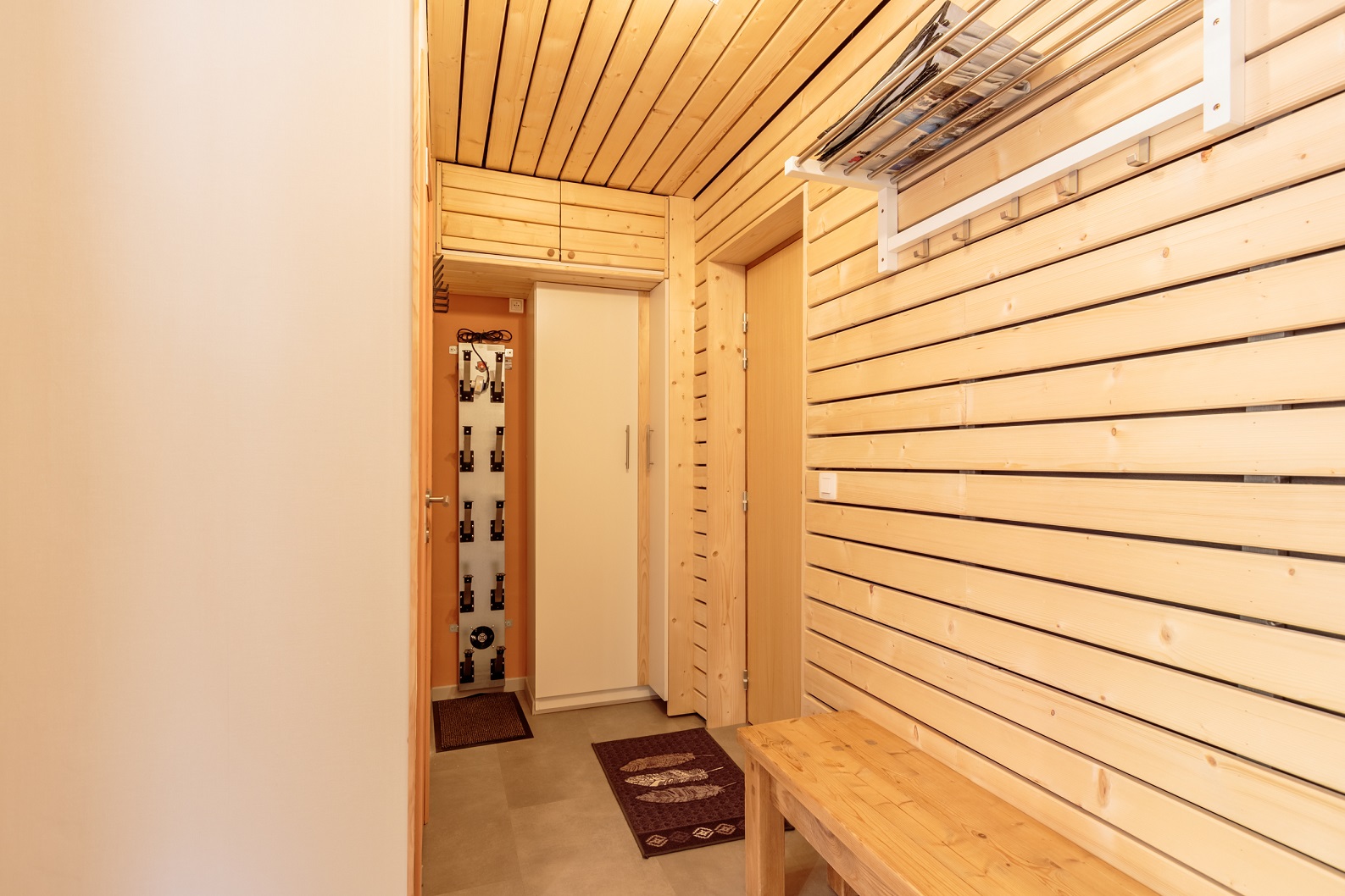 - L'entrée très spacieuse bénéficie de nombreux rangements et d'un sèche-chaussure