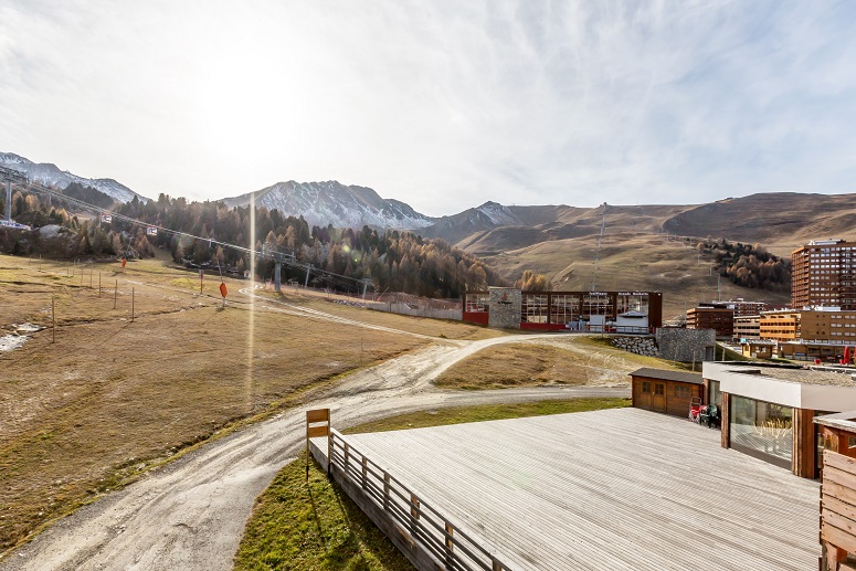 PLAGNE CENTRE – Résidence Le Mustag. Appartement 3 pièces, exposé Nord-Ouest, avec balcon offrant une vue à couper le souffle sur la vallée. La résidence est située à environ 50 m du centre station et des commerces. Elle offre une magnifique vue sur la montagne.
