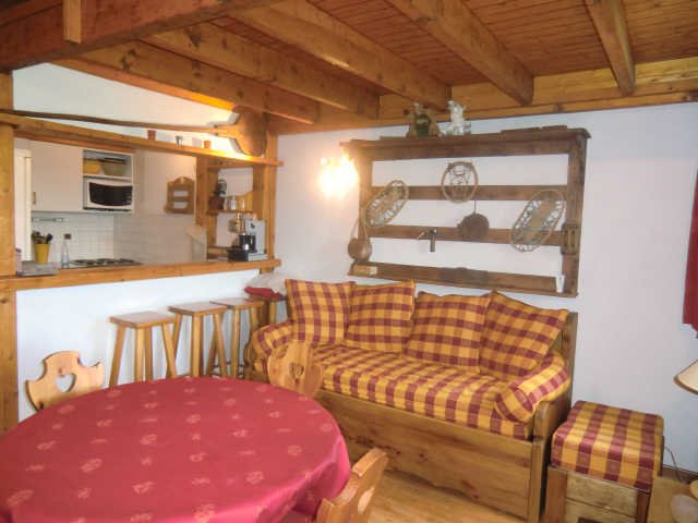 Studio coin montagne 4 personnes, 21 m², situé au 1er étage, sans ascenseur, avec balcon exposé Est, vue sur le Mont-Blanc et le parc de jeu pour enfants, casier à skis individuel au RDC. Coin montagne : 2 lits superposés. Séjour : 1 canapé lit gigogne pour 2 personnes. Appartement équipé avec une télévision. Coin cuisine : 2 plaques électrique ,réfrigérateur, micro onde, lave vaisselle, appareil à raclette. Salle de bain et wc séparés. Résidence au pied des pistes, à proximité des commerces. Parking gratuit devant la résidence.