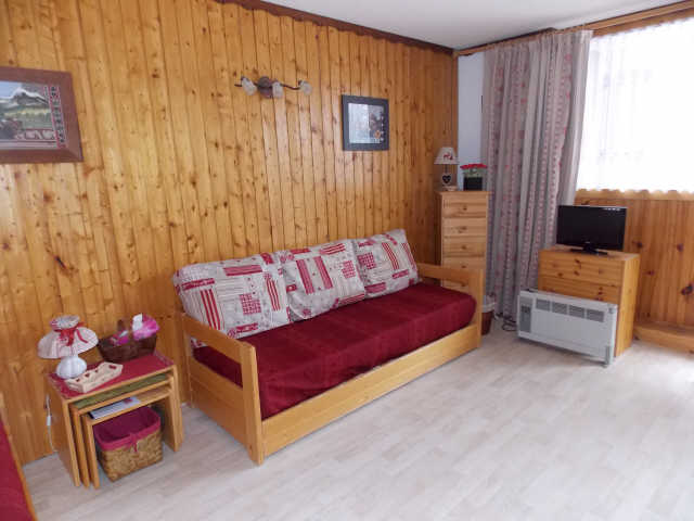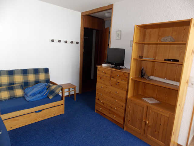 Studio + cabine pour 4/5 pers, 27m2, exposé Sud, avec balcon, belle vue sur la montagne et les pistes, situé au 2ème étage sans ascenseur (le balcon donne au 1er étage côté piste) Entrée N° 2 : escalier de droite - KITCHENETTE : 2 plaques vitrocéramiques, réfrigérateur, lave-vaisselle, four multifonctions. SEJOUR : coin salon 2 lits gigognes formant une banquette,TV - Cabine fermée : 2 lits superposés + 1 lit tiroir - SDB : douche, WC séparés. Literie : couettes. Les sols : PVC - Draps et ménage de fin non inclus - Casier à skis : N°42 au RDC - Studio refait à neuf (AUT 20), avec belle vue sur les pistes et les montagnes, au calme - Appt non fumeur et animaux non admis -La résidence : petite résidence de 3 étages, calme, située au pied des pistes, à env. 700m des commerces, reliée au village par navettes en bus gratuites (8h-minuit) -