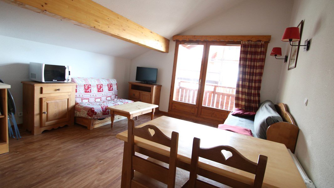 L'appartement est exposé sud, avec une belle vue sur les pistes sans balcon.