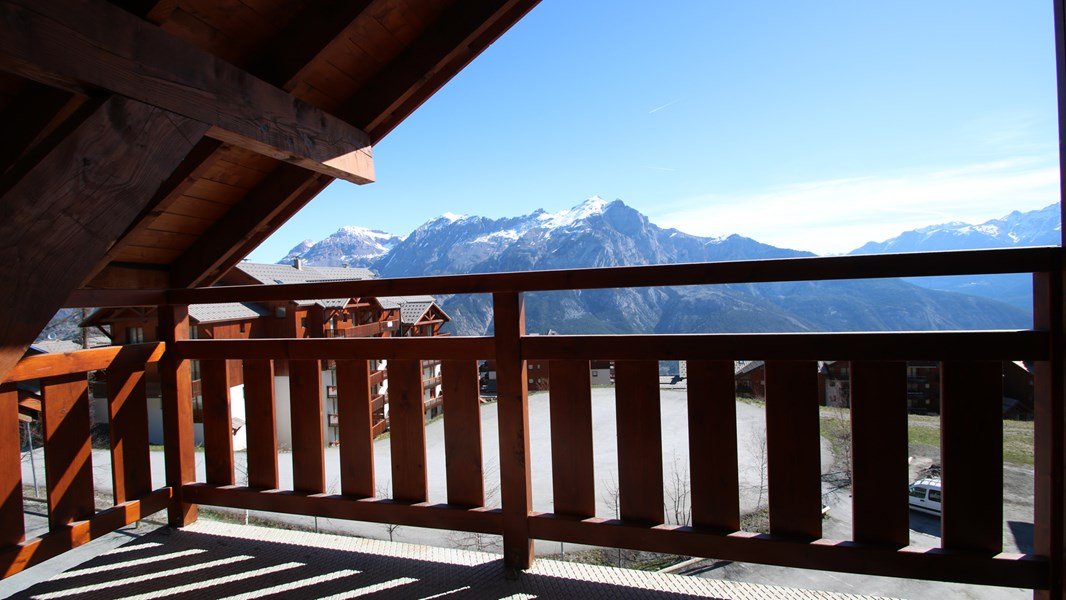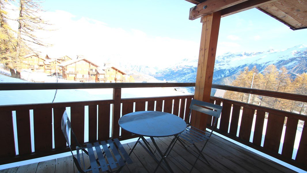 Grand appartement en duplex 3 chambres avec terrasse sur pistes situé dans les chalets de la Dame Blanche, meublé et équipé pour des vacances à la montagne pour 10 personnes avec balcon exposé ouest et une vue imprenable sur la vallée environnante.