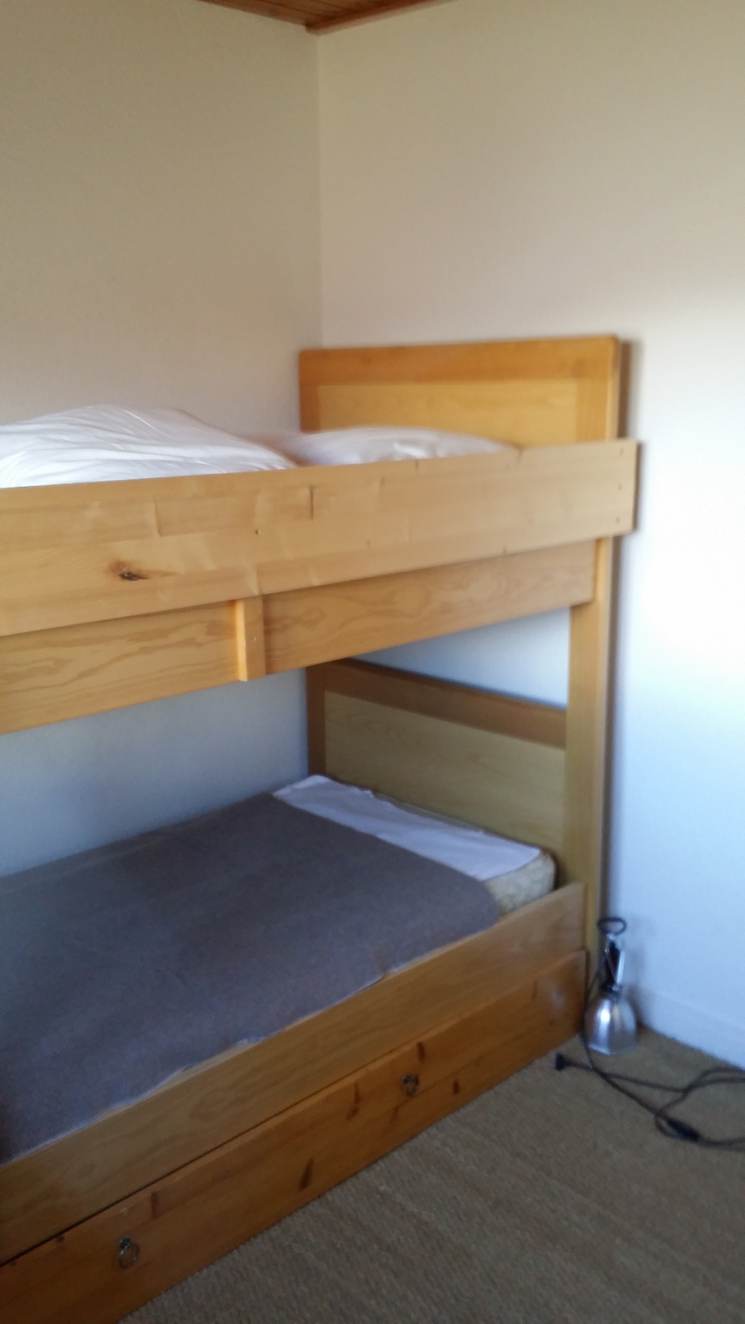 - Couchages : une chambre avec 1 lit double et une chambre avec lit superposé (placard et penderie). Grande salle de bain et WC indépendant