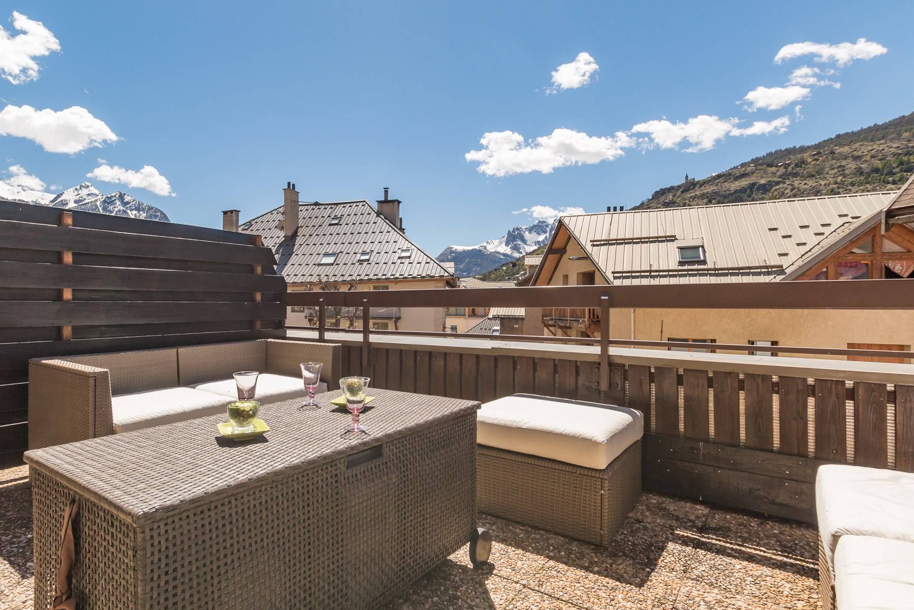 Les plus de cet appartement à la montagne : Appartement chaleureux, spacieux, au calme, bénéficiant d'une grande terrasse avec l'une des plus belles vues de Briançon et de sa vieille ville