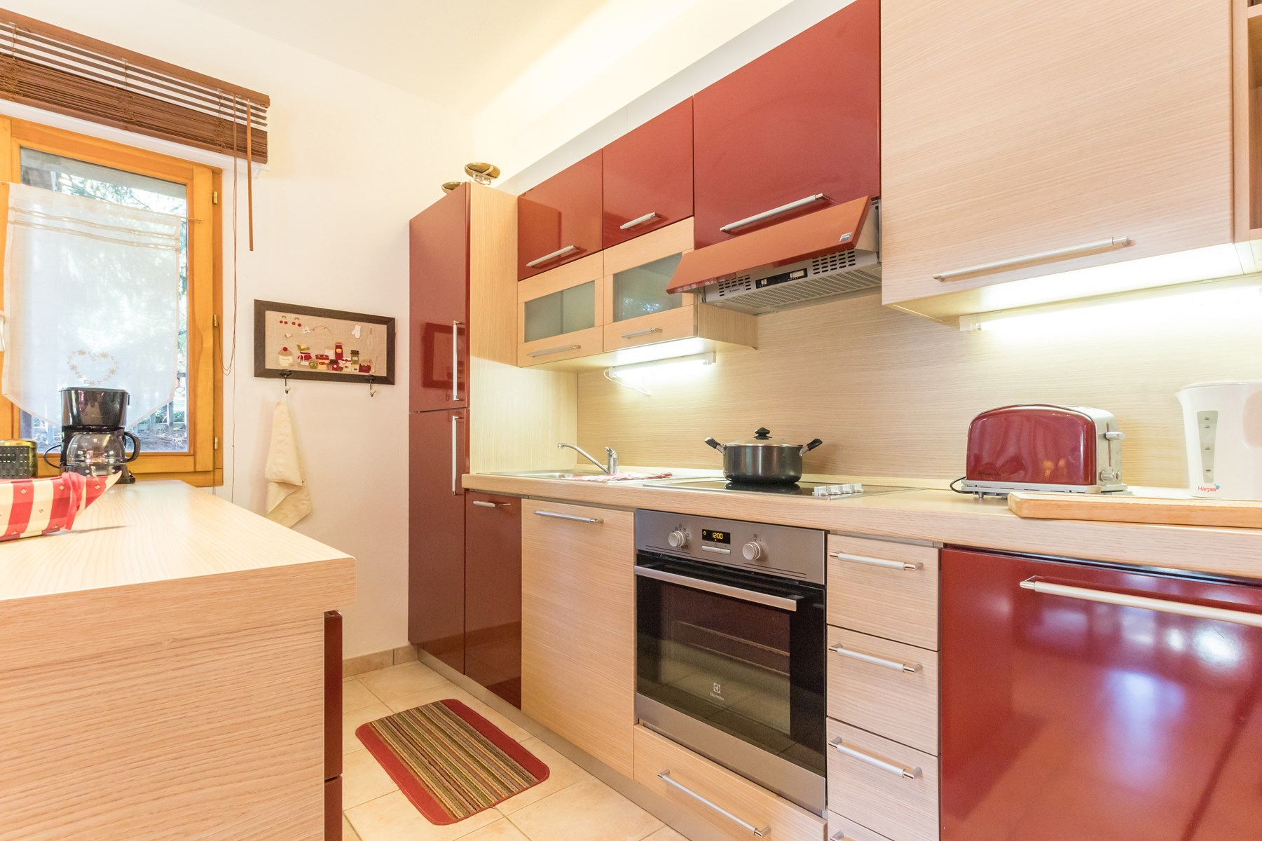 Coin cuisine entièrement équipé (lave vaisselle, lave linge, réfrigérateur, 4 plaques vitrocéramiques, four).