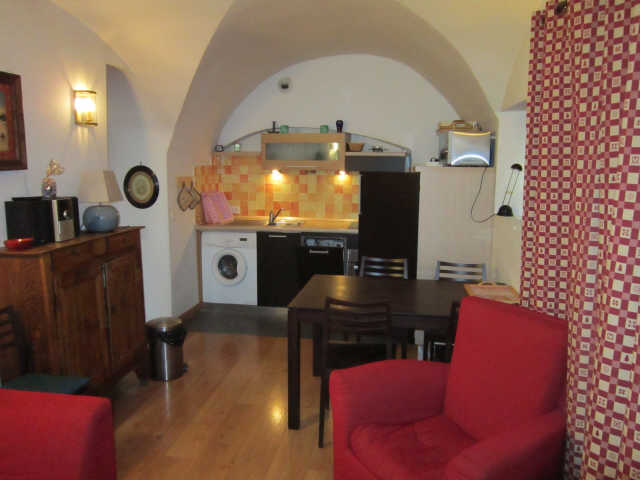Serre Chevalier 1500, le Monêtier les Bains, agréable appartement de type 2 + Coin Montagne comprenant : entrée, une chambre avec un lit double (2 couchages), salle de bains, WC séparé, coin montagne dans couloir avec 2 lits simples superposés (2 couchages), salon / séjour coin cuisine(lave-vaisselle), balcon.