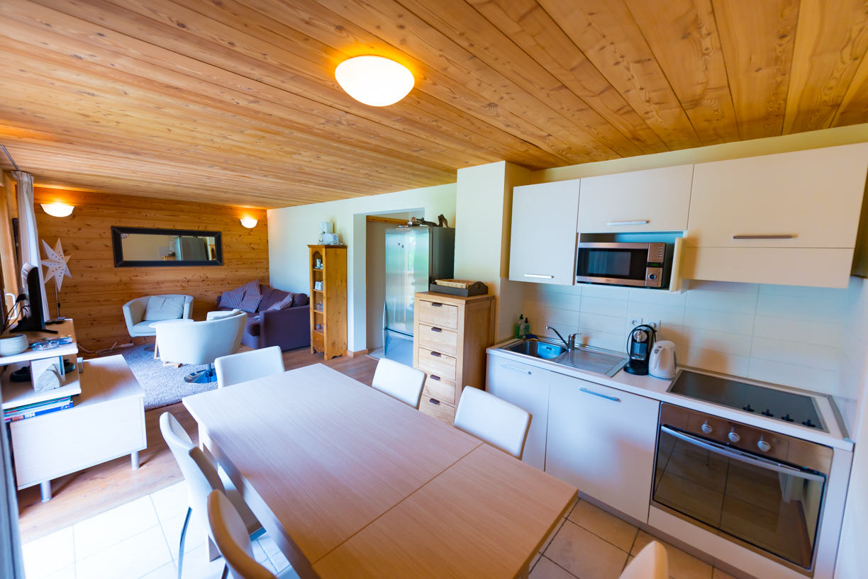 Les avantages de cet appartement en location à la montagne : Ce joli deux pièces pour quatre personnes est idéalement situé dans un secteur calme. Les portes vitrées et l'exposition sud-est offrent beaucoup de luminosité au logement.