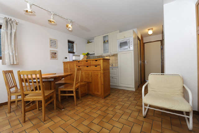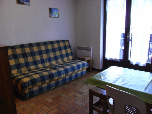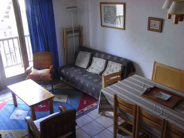 Studio + coin montagne (environ 26 m²)exposé sud situé au 1er étage d'une petite résidence située à environ 500 m des remontées mécaniques comprenant : un séjour avec balcon exposé sud,canapé-lit 2 pers, TV. Un coin cuisine équipé plaques électriques, four, MO. Coin montagne fermé avec 2 lits superposés. Une salle de bains avec WC.