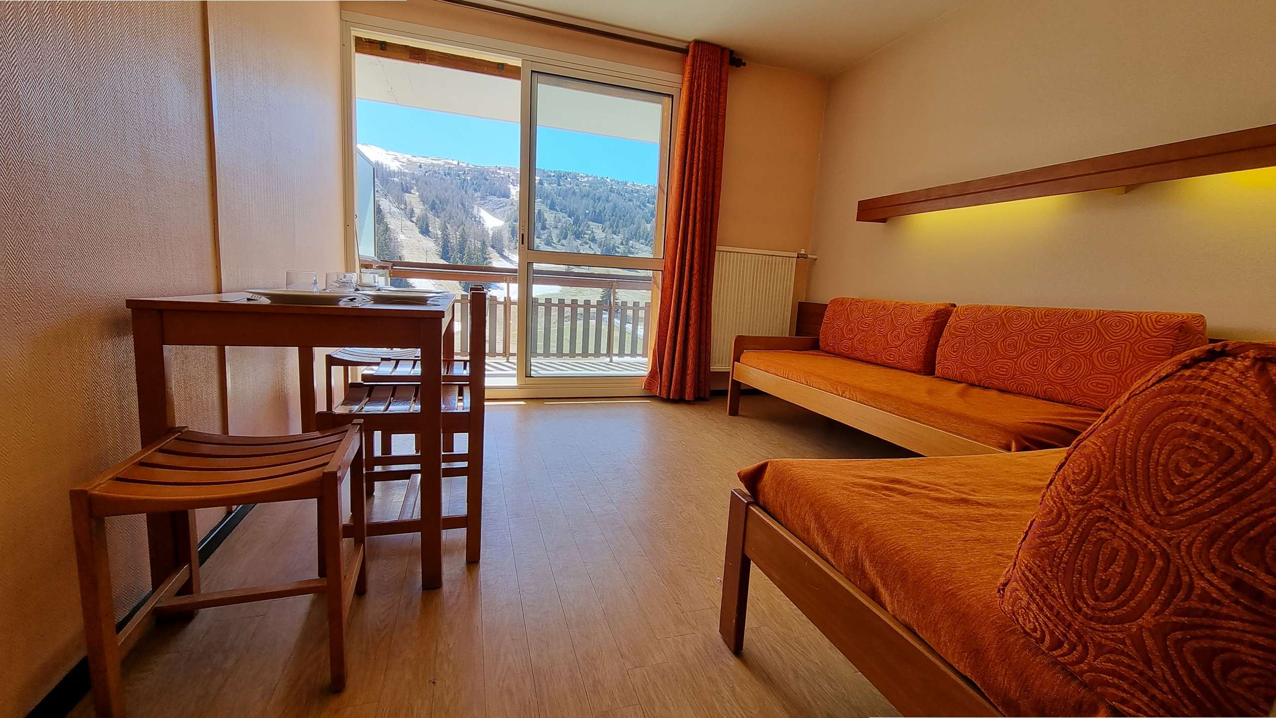 Studio 4 personnes rénové situé côté sud avec balcon, face aux pistes et vue magnifique sur le Pic de Bure.