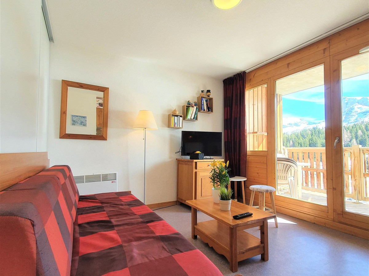 TV comprise. Balcon vue sur vallée. Exposition Vallée. Studio au pied des pistes, Commerces et services au RDC de la résidence.