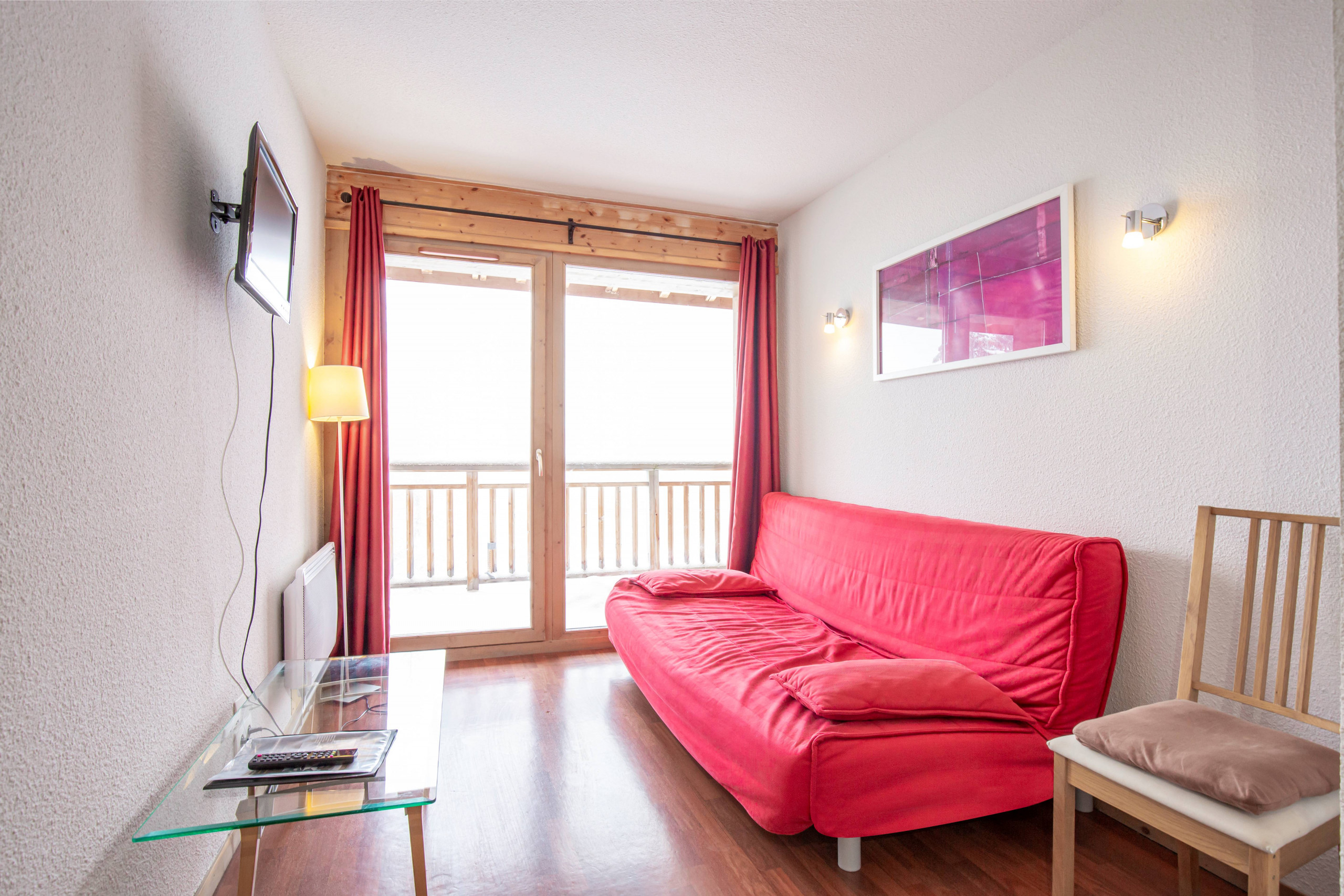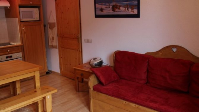 Studio 2 personnes 17m² situé dans la Résidence du Chalet Club à 50m du télésiège de Charmasson, 400m du télécabine d'Arrondaz et 400m du centre et des commerces.