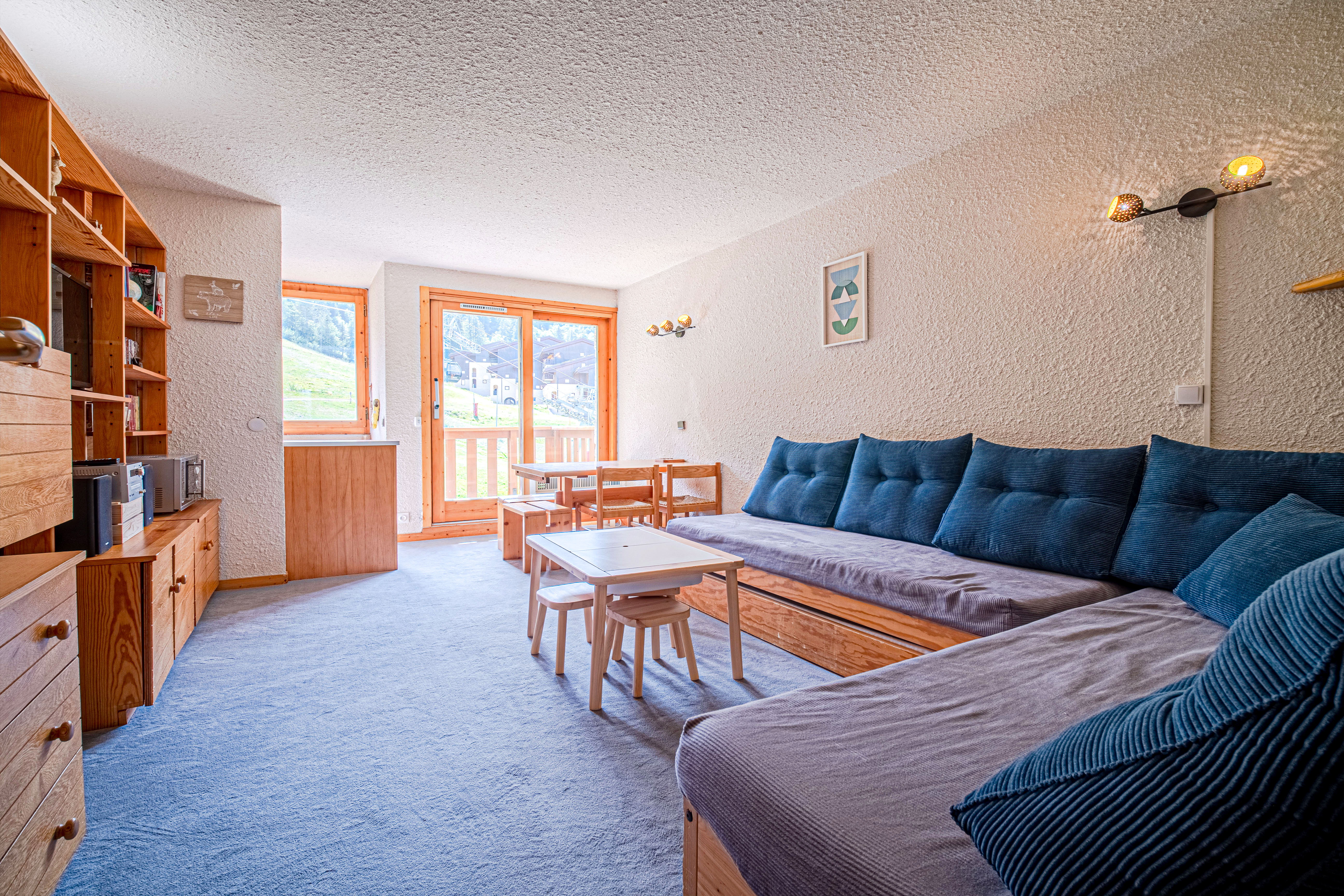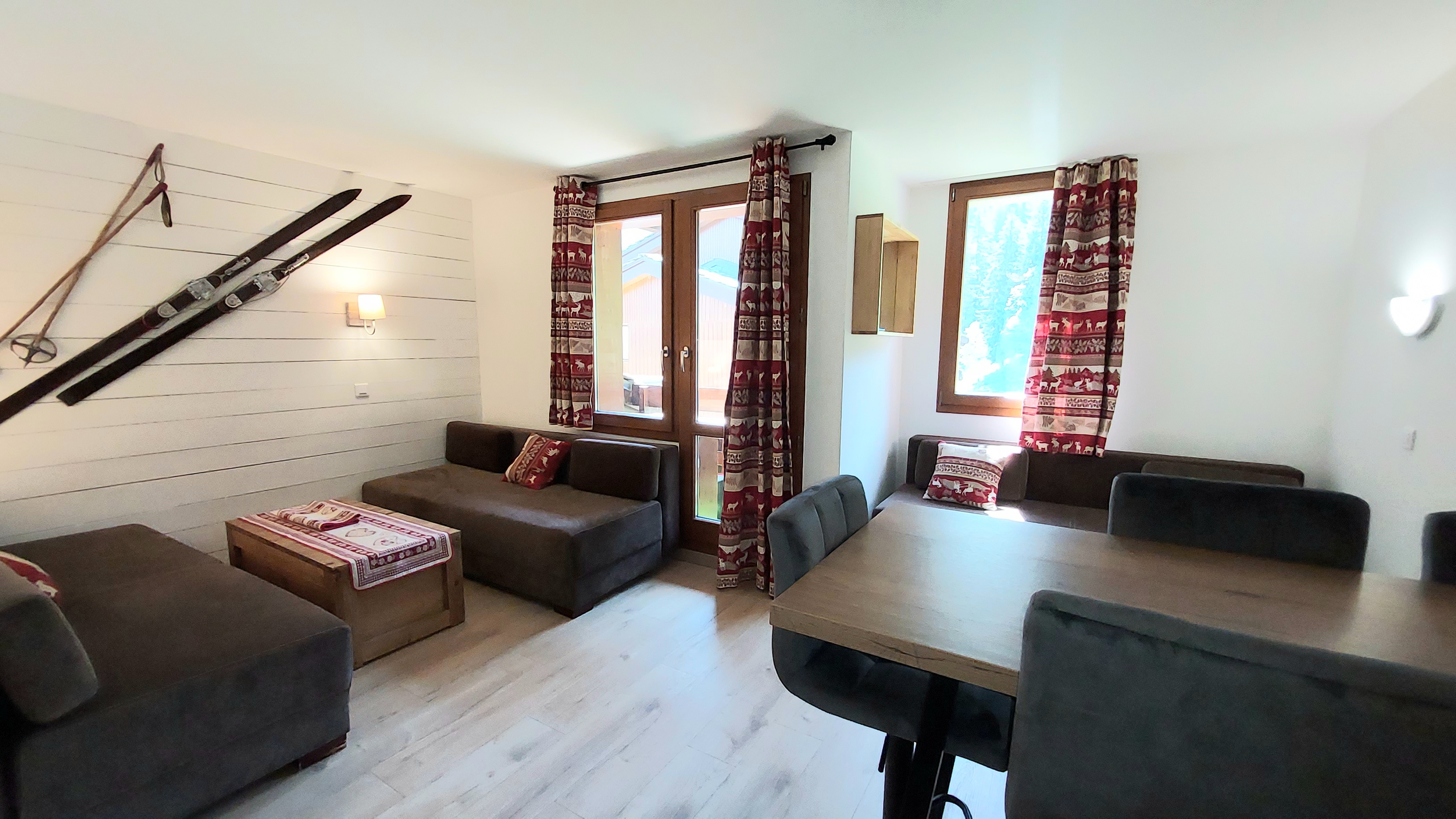- Séjour confortable avec TV, canapé 2 places avec méridienne, 1 table basse. Balcon équipé exposé Est avec vue montagne. Soleil le matin.