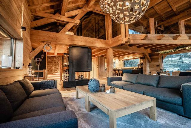 Ce chalet neuf aux équipements de standing peut accueillir 18 personnes sur une surface d’environ 400m² sur 4 niveaux.