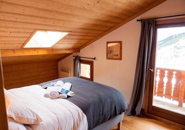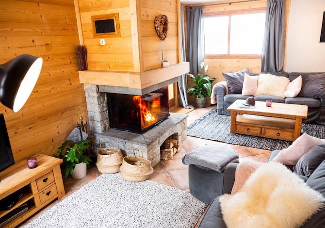 Chalet : Chalet typiquement savoyard : confortable et chaleureux avec cheminée et télévision. Exposition plein sud. Sur place à disposition : sauna et bain à remous, local à skis.
