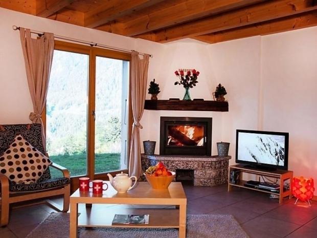 "Chalet Bonbon", chalet 5 pièces 125 m2 sur 2 niveaux. Clair, aménagement confortable et de bon goût: 2 chambres doubles. 1 chambre, sans armoire avec 1 lit et 1 x 2 lits superposés (longueur 200 cm). 1 chambre mansardée hauteur plafond 110 - 200 cm avec 2 lits. Séjour/salle à manger ouvert avec baie vitrée avec cheminée et TV (câblée) (écran plat), DVD. Cuisine ouverte (four, lave-vaisselle, 4 plaques vitrocéramique, four micro-ondes, cafetière électrique, appareil à raclette, service à fondue (fondue au fromage)). Bain/WC, douche/WC, Sauna. Chauffage par le sol. Balcon, terrasse, pelouse. Meubles de terrasse, barbecue. Belle vue panoramique sur les montagnes. A disposition: lave-linge, sauna, chaise haute pour enfant, lit bébé, bois (en sus). Internet (Connexion WIFI, gratuit). Veuillez noter: maison non-fumeur. Inclus: Linge (1er jeu de draps et serviettes), Nettoyage final, Lit bébé (jusqu'à 2 ans), Taxe environnementale Services supplémentaires obligatoires sur le site: Taxe de séjour 2.5EUR par personne et par jour
